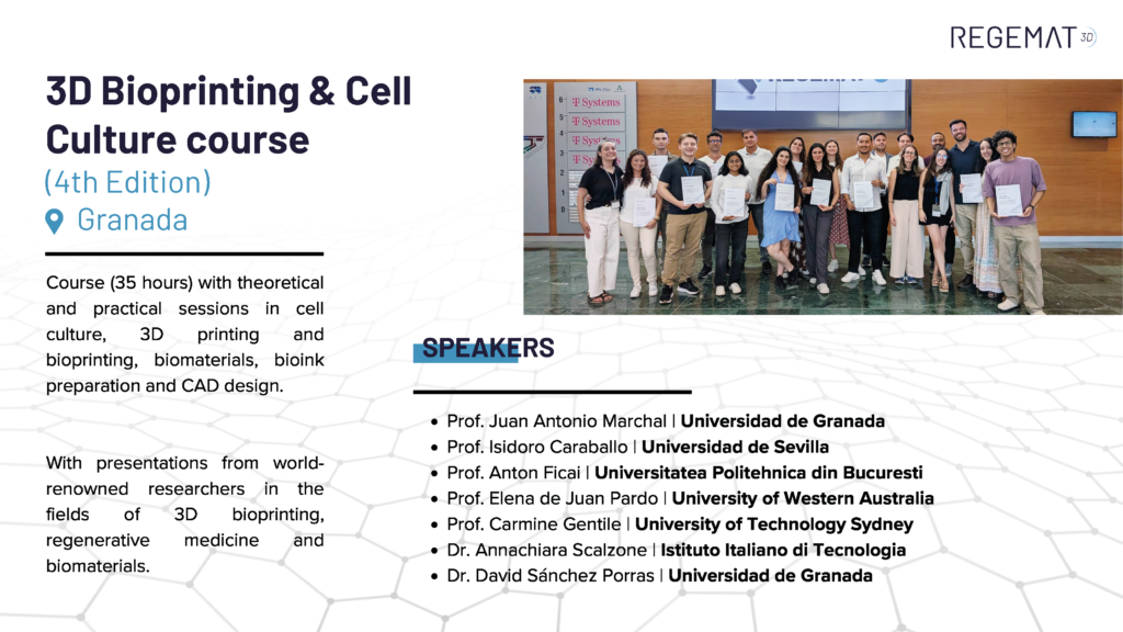 • Specialized talks by renowned researchers in 3D bioprinting and industrial partners Hands-on experience in cell culture